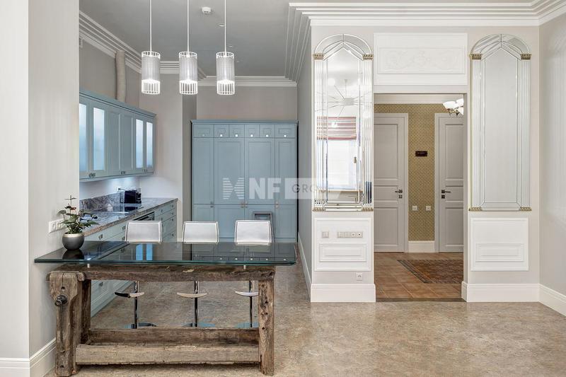 Предлагается стильная квартира в историческом особняке на Гоголевском бульваре. Планировка: гостиная-кухня, три спальни с собственными ванными, кабинет, гардеробная, постирочная, гостевой санузел. Пространство оформлено в современном стиле, квартира меблирована и оснащена качественной бытовой техникой. Окна ориентированы на 2 стороны: в тихий переулок и во двор. За квартирой закреплено 2 машино-места во дворе за шлагбаумом.