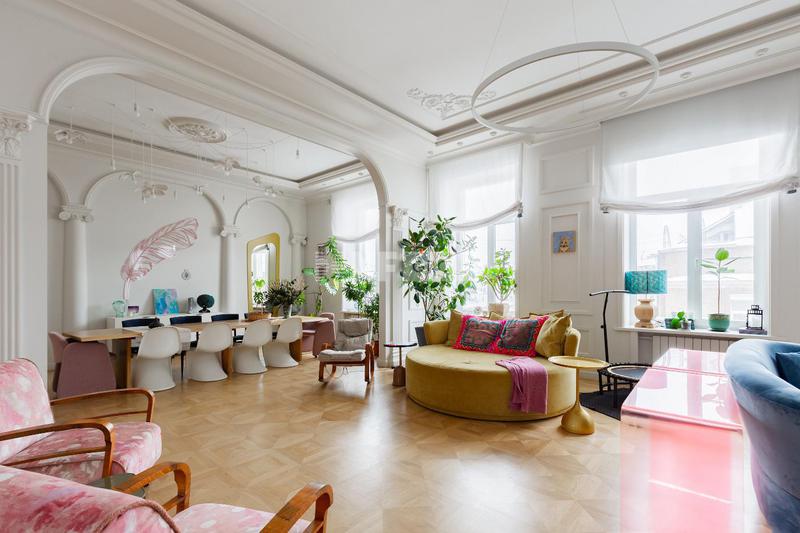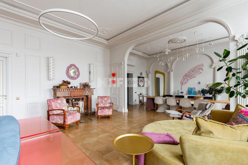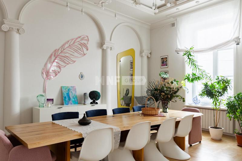 Предлагается квартира с дизайнерской отделкой в историческом особняке на Мясницкой улице. Здание прошло полную реконструкцию в 2023 году, сохранив уникальную архитектуру и придав пространствам современный уровень комфорта. Планировка: отдельная кухня, гостиная-столовая, три спальни, кабинет (при желании может быть переоборудован в четвёртую спальню), две полноценные ванные комнаты, два гостевых санузла, две гардеробные и постирочная. Отделка выполнена по авторскому дизайн-проекту с использованием премиальных материалов. Установлена мебель, изготовленная на заказ, дизайнерские светильники и качественная бытовая техника. Высота потолков – 4 м. Виды из окон во внутренний двор и на историческую Мясницкую улицу. Парковка во дворе. Один из самых престижных и атмосферных районов центра Москвы, с богатой архитектурой, ресторанами, галереями и развитой культурной инфраструктурой. Малоквартирный формат обеспечивает приватность и высокий статус проживания.