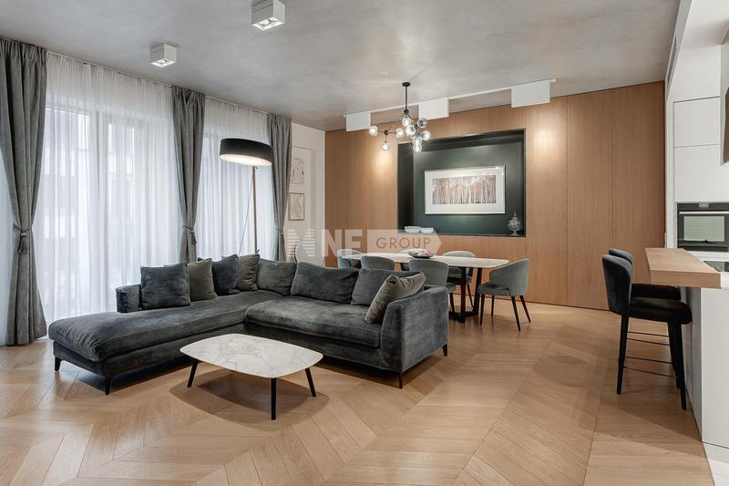 Эксклюзив NF Group! В долгосрочную аренду предлагается стильная квартира с дизайнерской отделкой в «Доме на Бурденко» в Хамовниках. Квартира сдается впервые. Планировка: гостиная-кухня, мастер-спальня с ванной и гардеробной, гостевая спальня, кабинет, гостевой санузел, постирочная-кладовая, гардеробная в прихожей. Пространство оформлено в современном стиле с применением натуральных материалов, квартира меблирована и оснащена всем необходимым для комфортного проживания. Высота потолка – 3,3 м. Окна ориентированы на тихую улицу. В комплексе предусмотрен подземный паркинг, 1 машино-место входит в стоимость аренды. «Дом на Бурденко» – жилой комплекс премиум-класса в Хамовниках. Огороженная территория, презентабельная входная группа, удобный доступ ко всей инфраструктуре.